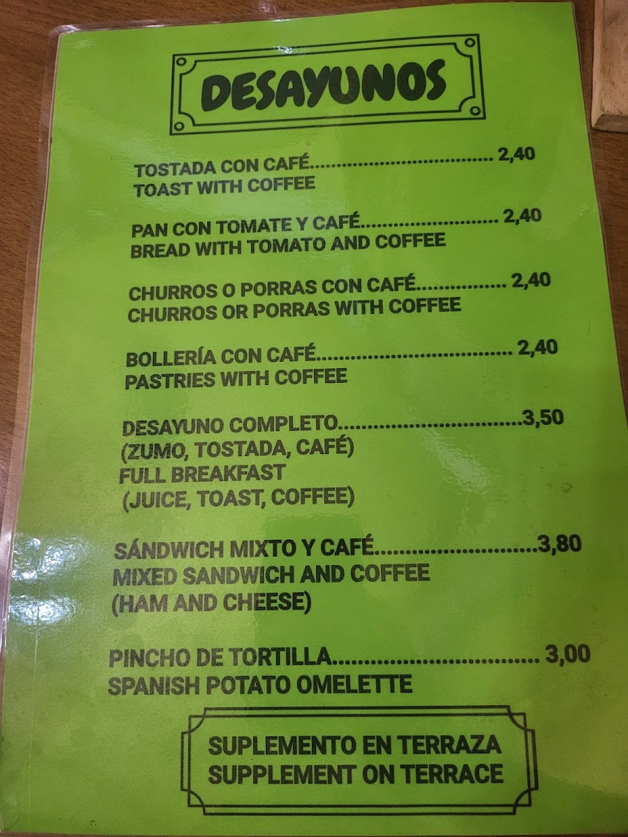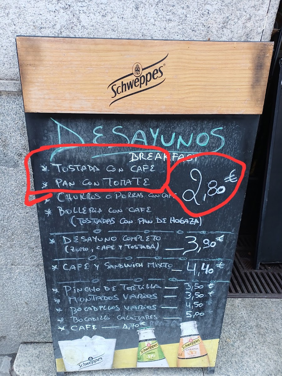 Meat lovers will enjoy the Codillo, a succulent pork knuckle, tender and full of flavor. The Entrecot, a juicy rib-eye steak, also stands out as a great choice for a fulfilling main course. For a lighter option, the Tostada Con Café and Tostada de Pisto are simple yet delicious dishes, with toasted bread topped with coffee or the Spanish ratatouille-like vegetable mix, respectively.